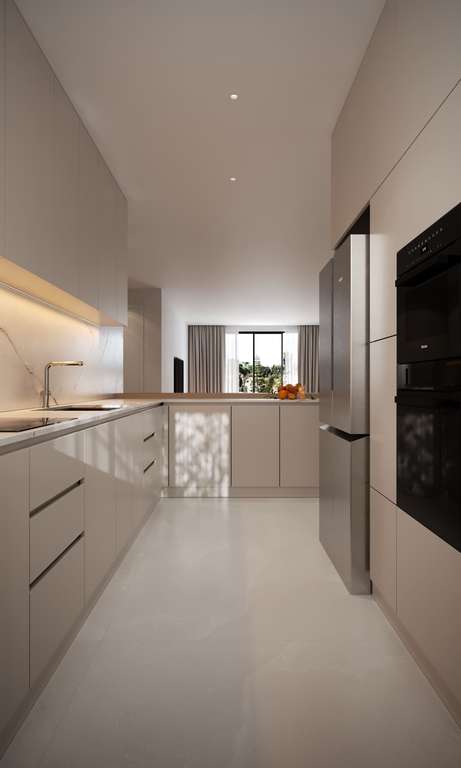 Los interiores de nuestros apartamentos son un verdadero deleite para los sentidos. El salón/comedor, diseñado con un concepto de planta abierta, se integra a la perfección con la cocina, creando un espacio ideal para el entretenimiento y la vida familiar. Grandes ventanales permiten que la luz natural inunde cada rincón, mientras que las generosas terrazas o jardines ofrecen un lugar perfecto para disfrutar del aire libre. Cada propiedad cuenta con acabados de alta calidad, incluyendo suelos porcelánicos, cocinas modernas y funcionales, y baños equipados con calefacción por suelo radiante, todo pensado para tu confort.