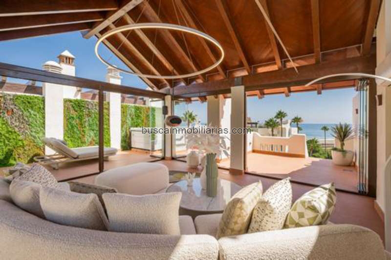 This spectacular penthouse is located in a prestigious Bahía del Velerín, beachfront communit, between Marbella and Estepona, offering an unrivalled combination of luxury, privacy, and Mediterranean lifestyle. The residence is surrounded by lush tropical gardens with a stunning lagoon-style swimming pool, a poolside snack bar, and the security of a 24-hour gated complex. Its privileged position provides direct access to the beach and close proximity to world-class golf, fine dining, and shopping.