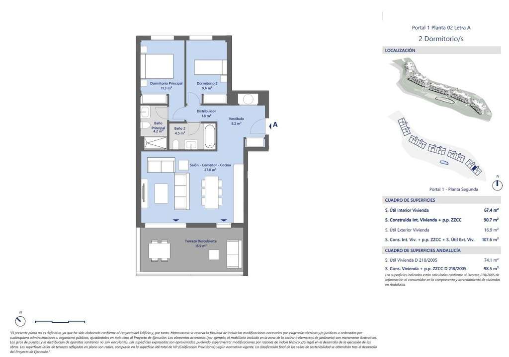 El complejo está formado por 106 viviendas plurifamiliares de 2 y 3 dormitorios con plaza de garaje subterránea y trastero.