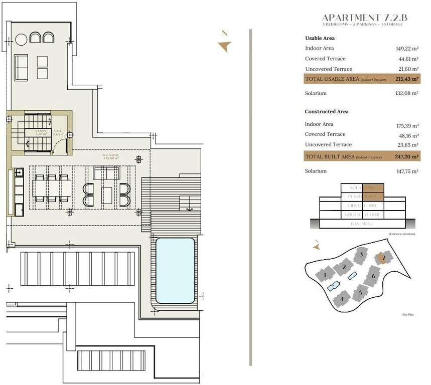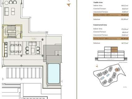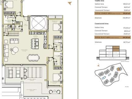La urbanización consta de siete elegantes edificios de tres plantas cada uno, cuidadosamente situados para aprovechar al máximo las vistas al mar y la luz natural. Los apartamentos están disponibles en configuraciones de 2, 3 y 4 dormitorios, con interiores bellamente elaborados y acabados de alta calidad. Los apartamentos de la planta baja cuentan con amplios jardines privados, mientras que los áticos disponen de solárium y piscina privados. Todos los apartamentos cuentan con modernas cocinas Modulnova, que ofrecen una mezcla de estilo y funcionalidad.