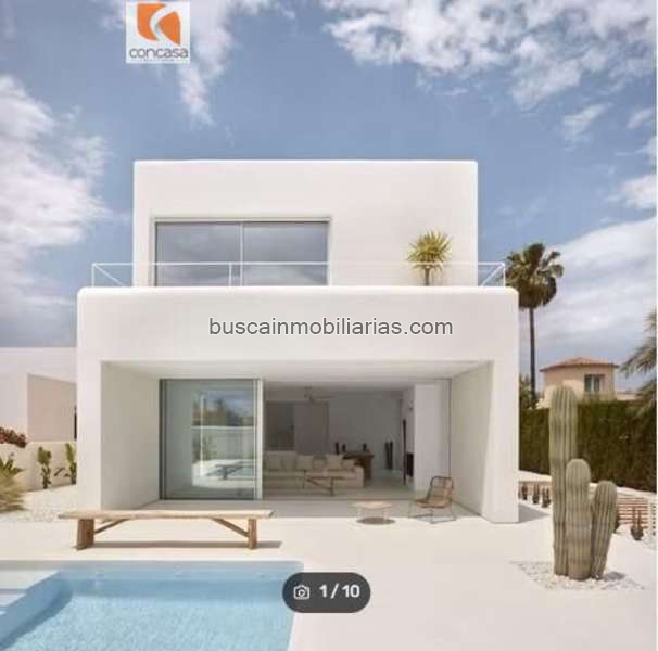 Villa a estrenar con 3 habitaciones dobles, 2 baños, cocina amueblada totalmente abierta a salón, gran terraza, piscina privada y parking para dos coches. Posibilidad de añadir un semi-sótano de 70m2 (no incluido en precio).