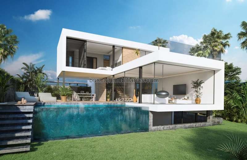 La villa consta de planta baja, planta alta y sótano luminoso y habitable con una gran sala de cine, gimnasio, sauna y una zona de Spa con acceso a un patio japonés con una piscina con cascada para bañarse y refrescarse.
