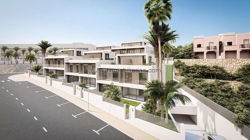 Las villas situadas en las esquinas disponen de jardín propio y piscina privada de cloración salina. Las villas centrales la piscina la tienen situadas en la tercera planta de la vivienda. Los espacios abiertos y funcionales son sin duda los protagonistas de las viviendas, nos conectan con las terrazas y sus maravillosas vistas al mar, campo de golf y montaña.