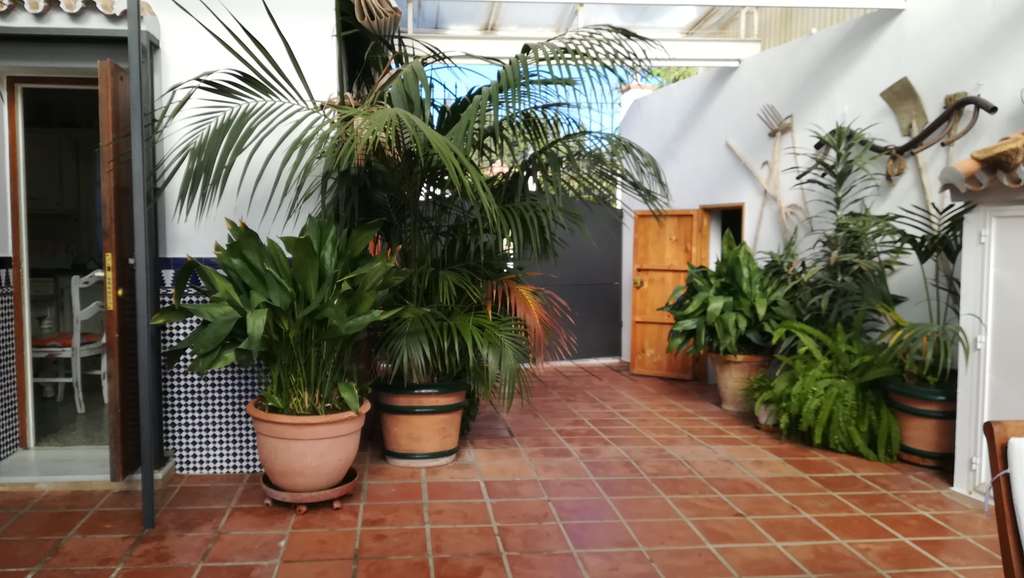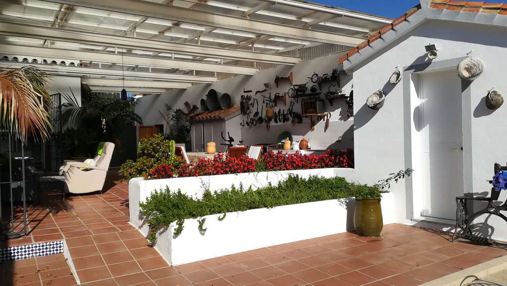 En la Parcela de unos 1.400 m2, consta de un garaje cubierto con capacidad para 2 o 3 vehículos. Consta de zona de barbacoa con pérgola, cocina, televisión y sofás y sillones, con ambiente chill-out. Tiene Jardín con césped y arboles frutales. Consta de trasteros, el cuarto de maquinarias, un aseo exterior con ducha.