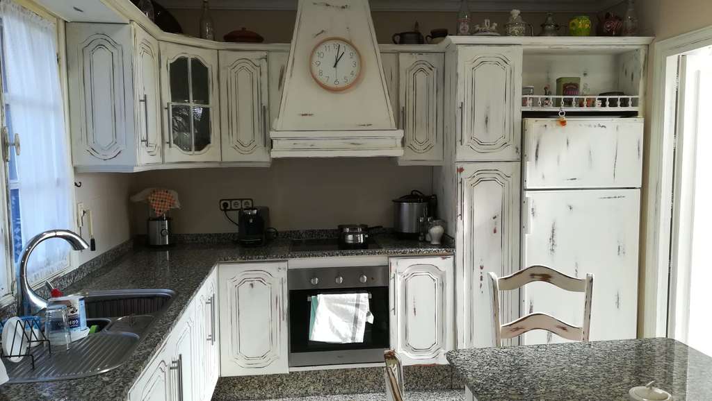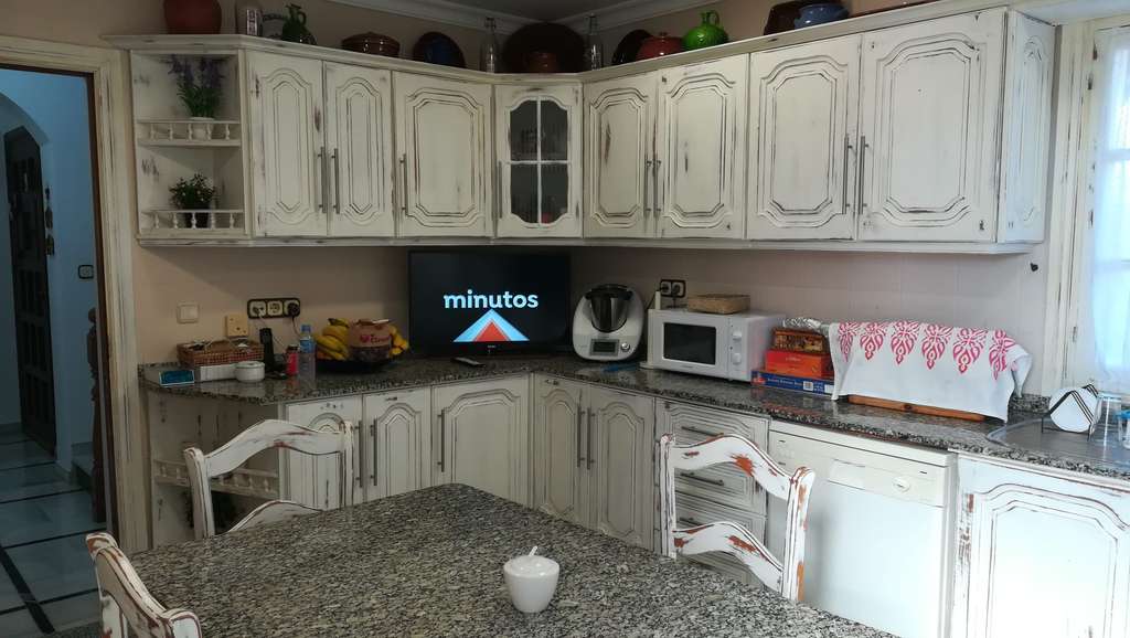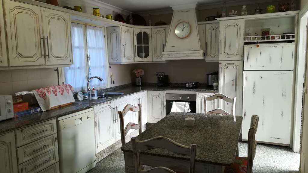 Planta Baja : Tiene Cocina Estilo Vintage, totalmente equipada con Electrodomésticos de alta calidad, y acceso al Patio y a la zona de barbacoa, Piscinas y Trastero. A través de la fabulosa Cocina se accede al Vestíbulo, y al Salón Principal a 2 ambientes, con chimenea, se accede al Jardín y a la Piscina. Consta de una pequeña habitación dedicada a despacho. También consta de dormitorios y un cuarto de baño totalmente equipado con ducha.