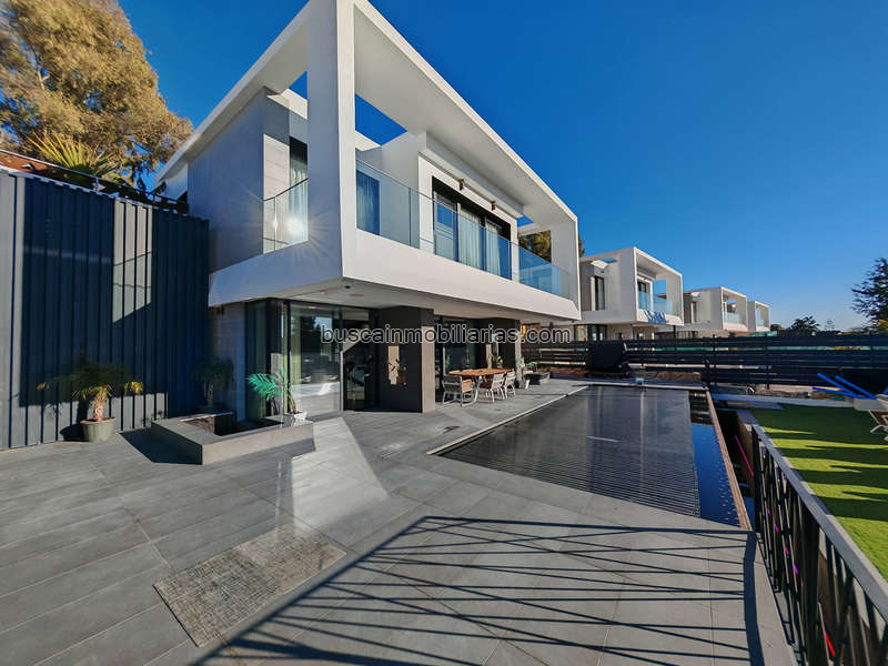 Villa en venta en Valle Romano, Estepona con 4 dormitorios, 3 baños, 1 baño en suite, 1 aseo y con orientación oeste, con piscina privada, garaje privado (1 plazas) y jardín privado. Respecto a las dimensiones, la propiedad presenta 316 m2 construidos y 495 m2 de parcela. Tiene las siguientes características servicios cercanos, transporte cercano, aire acondicionado, semi amueblado, cocina totalmente equipada, sótano, sala de invitados, alarma, a estrenar, barbacoa, aseo para invitados, cocina equipada, salón, vistas al campo, vistas a la montaña, vistas al golf, piscina climatizada, riego automático, sistema domótico, lavadero, internet - wi-fi, terraza cubierta, armarios empotrados, vistas al jardín, vistas a la piscina, suelo radiante (baños), cerca de playa / mar, cerca del golf, terraza descubierta, puertas de cristal, cocina americana, tiendas cerca, cerca de la ciudad, cerca del puerto, colegios cerca y cámaras de vigilancia.
