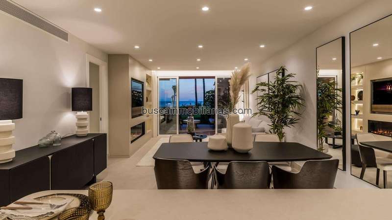 Al entrar a la propiedad nos espera una impecable cocina abierta y una sala de estar con chimenea eléctrica, que nos permite saborear vistas panorámicas del fascinante Mar Mediterráneo.