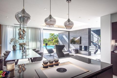 Pisa la generosa terraza con una sala de estar hundida, fogata, piscina y una cocina al aire libre con una barbacoa de gas y área de comedor con grifo de agua fría/caliente. Desde aquí, disfruta de las impresionantes vistas del mar Mediterráneo sobre el campo de golf. La sofisticada suite principal en el piso superior se abre a una terraza con vistas impresionantes. El impresionante nivel del sótano alberga características de entretenimiento como un área de TV, bodega de vinos y sala de cine.