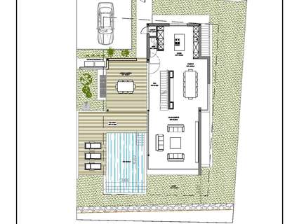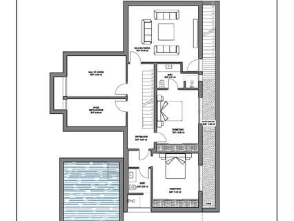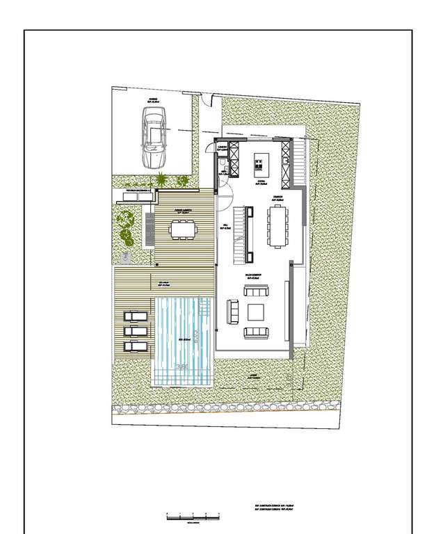 Las villas constan de planta baja, planta alta y luminoso sótano con una gran sala de cine, gimnasio, sauna y zona Spa con acceso a un patio japonés con piscina con cascada para bañarse y refrescarse.