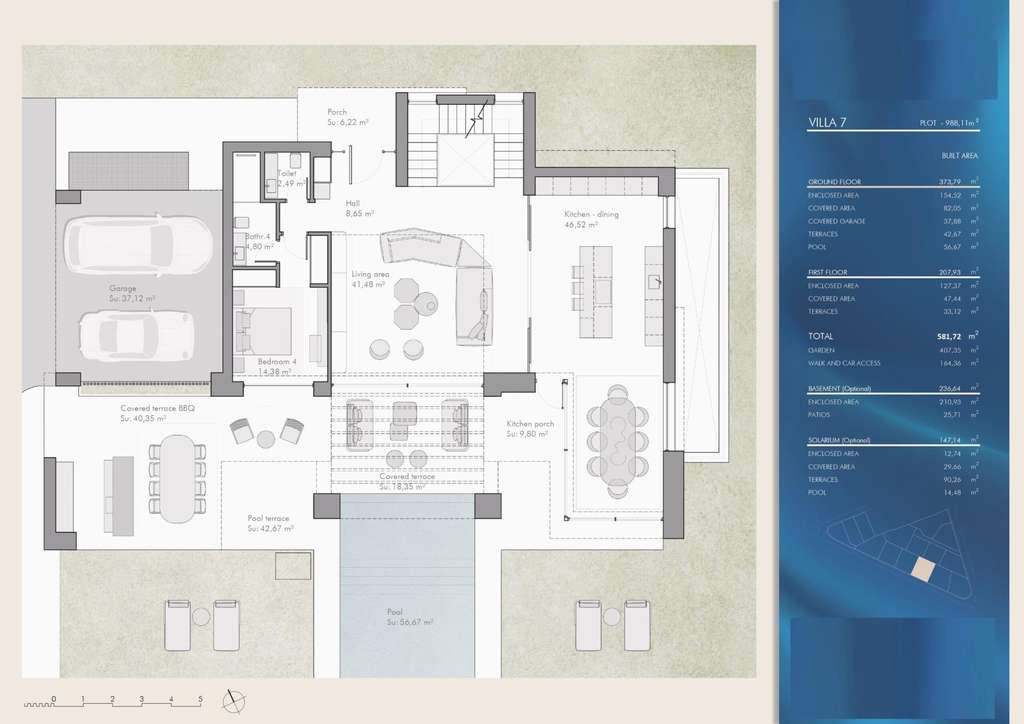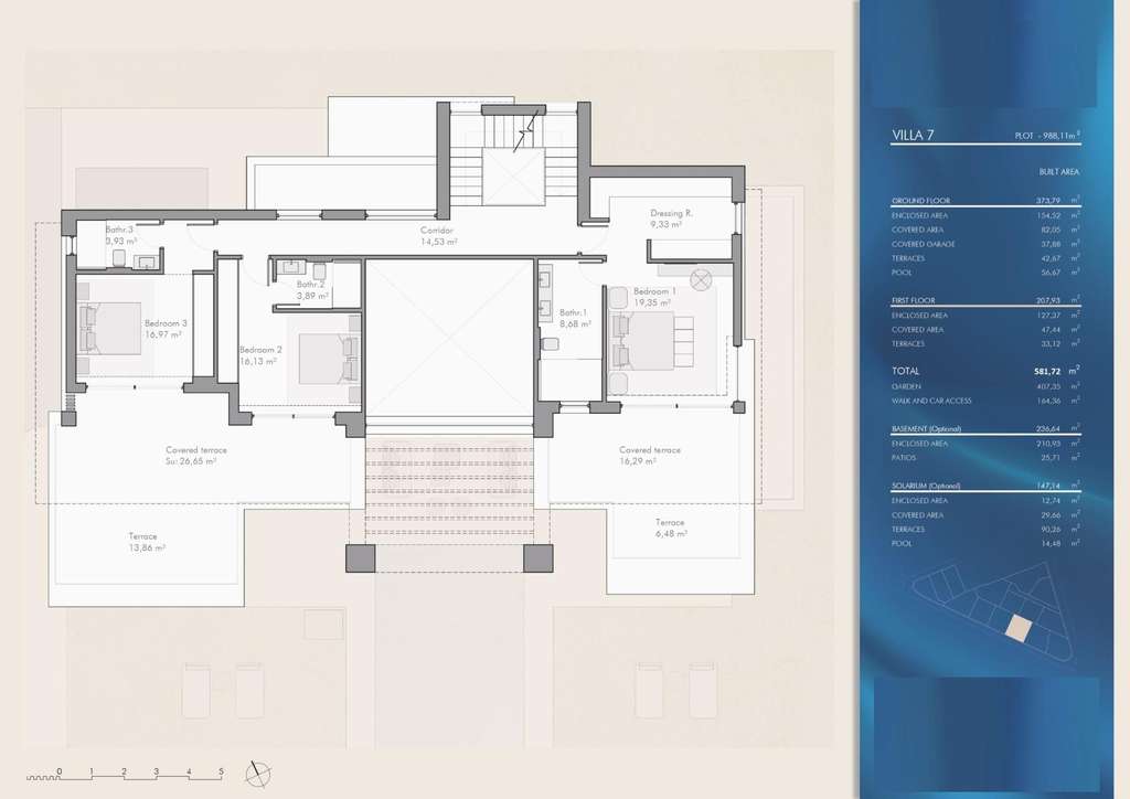 Cada villa está diseñada en dos amplias plantas, con la posibilidad de añadir un sótano y un solárium privado, lo que le permite personalizar su hogar a la perfección. Con orientación sureste, las propiedades disfrutan de abundante luz natural y de impresionantes vistas al mar desde los niveles superiores.