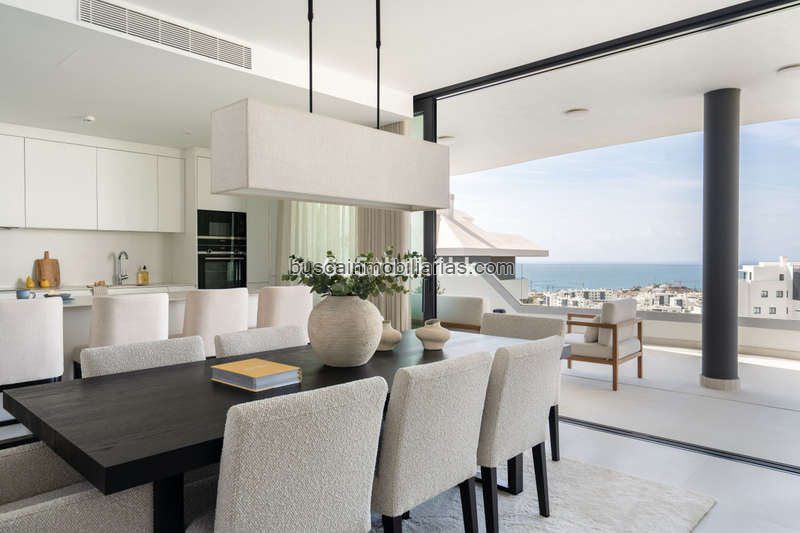 El apartamento ofrece espacios amplios, luminosos y con un diseño contemporáneo, distribuidos en 3 dormitorios, 2 baños y una impresionante terraza de aproximadamente 32 m2 con vistas abiertas al mar, ideales para relajarse y disfrutar del entorno natural.