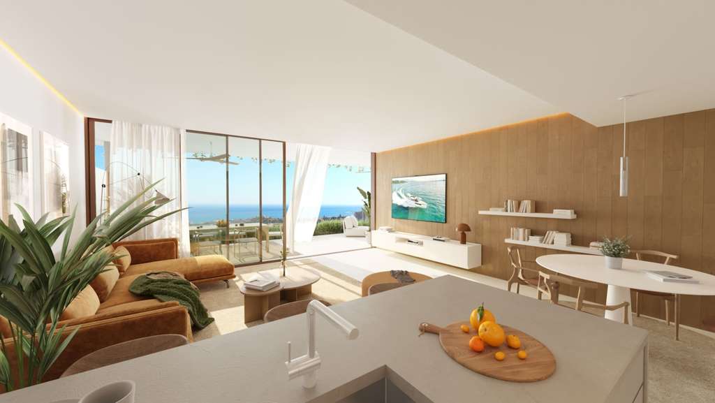 INTERIORES Los interiores de cada vivienda reflejan elegancia y confort, adaptados a distintos estilos de vida. Las Garden Villas de 2 o 3 dormitorios y los Apartments de hasta 123 m² están diseñados para brindar amplitud, con amplios ventanales y acabados de lujo que fusionan modernidad y calidez. Las Sky Villas, con espacios que alcanzan los 130 m² en el interior y hasta 137 m² en el exterior, ofrecen una experiencia de vida sin igual con dormitorios que se abren al horizonte y salas de estar donde cada rincón está pensado para el disfrute de las vistas y la comodidad. Todos los espacios están dotados de materiales de alta gama que reflejan la calidad y sofisticación de Higuerón Resort. ZONAS COMUNES Ofrece un entorno de ocio excepcional con espacios para la relajación, el deporte y el entretenimiento. Sus seis piscinas, distribuidas a lo largo del complejo, proporcionan un espacio ideal para disfrutar del sol en familia o entre amigos. Además, el desarrollo incluye senderos naturales rodeados de vegetación donde se pueden realizar rutas ciclistas y senderistas, ideales para conectar con la naturaleza. Las amplias zonas verdes invitan al esparcimiento y crean un ambiente de paz único, un verdadero refugio donde disfrutar del estilo de vida mediterráneo. A solo unos minutos se encuentra Higuerón Resort, con instalaciones de primer nivel como Sport Club, Spa y restaurantes gourmet, así como la estación de tren de Carvajal y otros centros de ocio y comercio, completando así un estilo de vida exclusivo y cómodo.