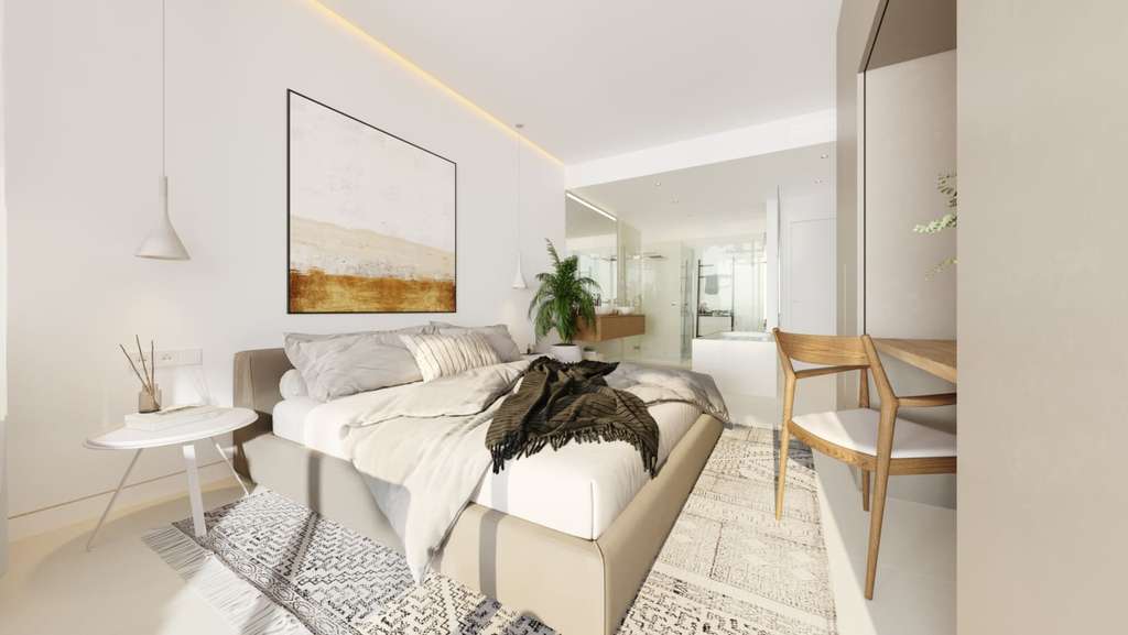 EXTERIORES El exterior se caracteriza por un diseño contemporáneo que armoniza con el entorno natural. Las viviendas, orientadas al sur y suroeste, han sido concebidas para maximizar la entrada de luz natural, creando espacios donde se disfrutan espectaculares vistas al atardecer. Las Garden Villas cuentan con amplias terrazas privadas y jardines de hasta 227 m², mientras que las Sky Villas ofrecen solariums con acabados de alta gama y vistas exclusivas al mar. El conjunto, rodeado de una frondosa vegetación mediterránea, incluye más de 20,000 m² de zonas ajardinadas y plantas aromáticas que invitan a la tranquilidad y el contacto con la naturaleza.
