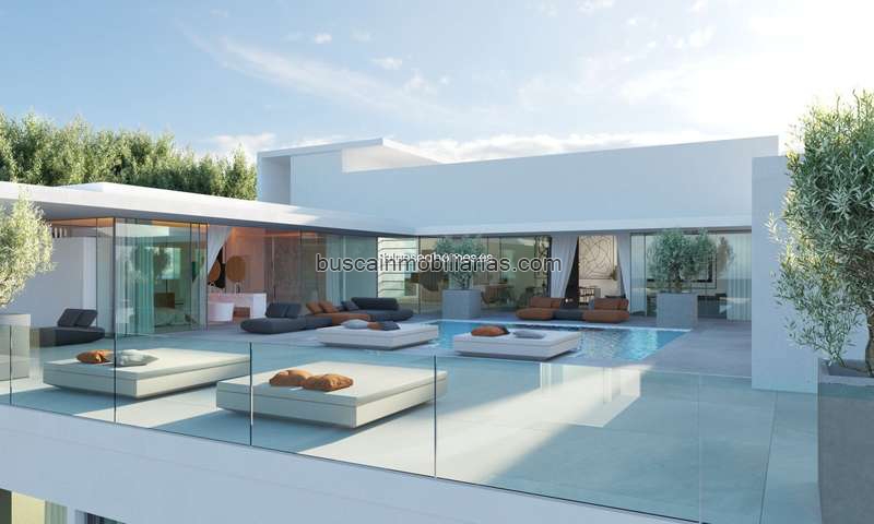 En la planta principal se encuentra la entrada con recibidor, aseo de cortesía, seis dormitorios con baños en suite, una amplia cocina amueblada y equipada que se abre al salón comedor con acceso a terrazas cubiertas y descubiertas, una piscina privada de diseño con lámina de agua y un garaje cerrado con capacidad para varios vehículos