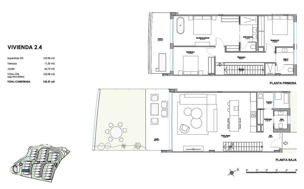 Las modernas viviendas adosadas, caracterizadas por su elegancia y modernidad, han sido diseñadas para satisfacer las necesidades más exigentes. Todas disponen de 3 dormitorios, 2 baños, cocina americana con amplio salón, armarios empotrados, terraza, jardín privado, 2 plazas de garaje, trastero.