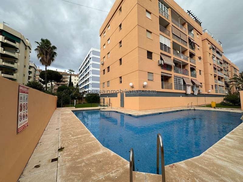Presentamos este atractivo piso situado en el corazón de Fuengirola, a escasos minutos de la playa. Su ubicación privilegiada permite disfrutar de un entorno tranquilo mientras se tiene acceso a todos los servicios necesarios como tiendas, restaurantes y transporte público con fácil conexión gracias a la cercana estación de tren. El inmueble cuenta con una cocina independiente completamente amueblada y equipada que incluye acceso al lavadero. Al ingresar encontramos un amplio salón luminoso que da paso a una terraza ideal para relajarse bajo el toldo instalado. La propiedad ofrece dos dormitorios dobles perfectos para descansar cómodamente además de un dormitorio individual adicional; ideales tanto para familias como para parejas o grupos pequeños. También dispone de un baño completo espacioso equipado con ducha moderna y funcionalidades adicionales como mosquiteras en las ventanas por toda la vivienda. Las áreas comunes son igualmente atractivas e incluyen zonas ajardinadas bien cuidadas junto a una refrescante piscina comunitaria donde podrás disfrutar del sol andaluz durante todo el año . Incluye plaza privada en garaje subterráneo así como trastero exclusivo proporcionando soluciones prácticas ante tus necesidades diarias.