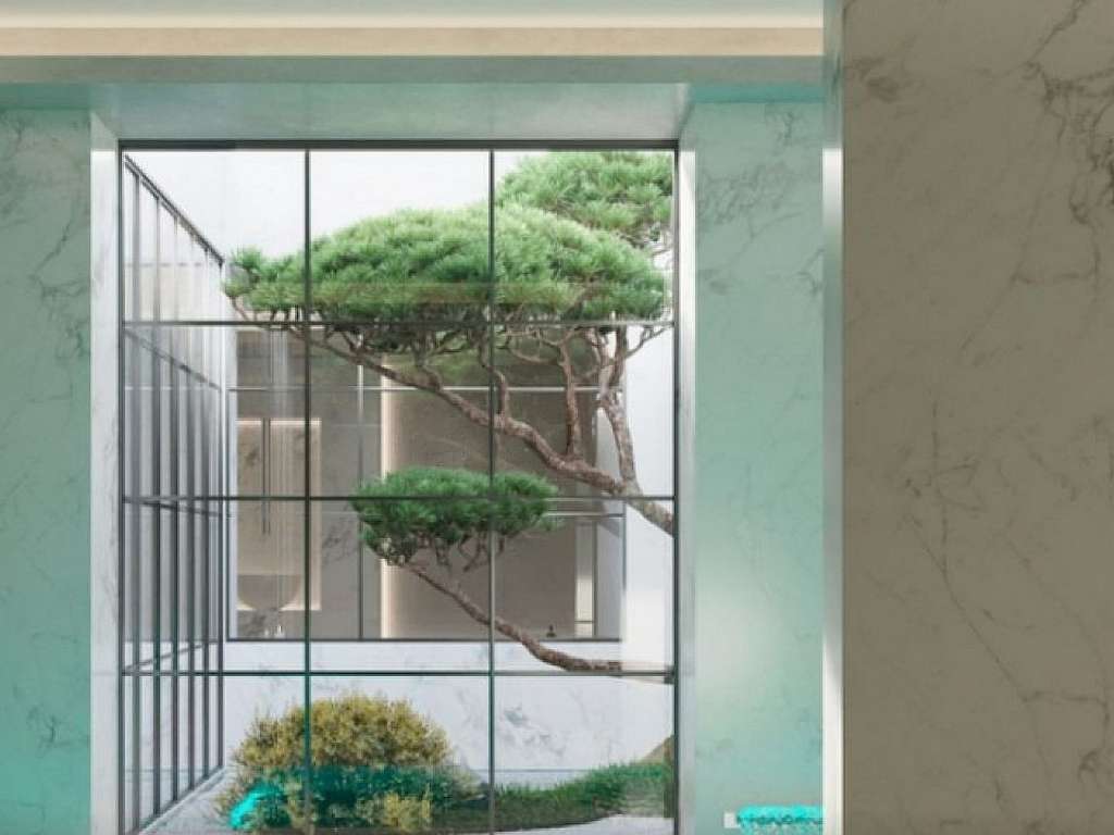 Zonas comunes: sala audiovisual, gimnasio, spa, enfermería, pool bar, solárium, piscina infinita, piscina climatizada, ludoteca, espacio de coworking, núcleo de oficinas y núcleo comercial.