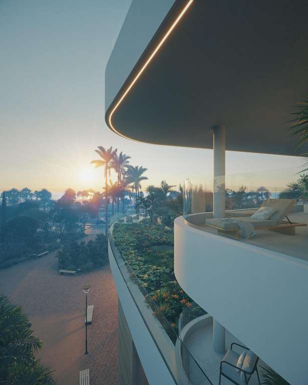 Esta moderna promoción destaca por su arquitectura en armonía con el mar y el viento, integrándose a la perfección en el paisaje costero. Las viviendas están diseñadas con una distribución escalonada para maximizar las vistas y la privacidad, y ofrecen una amplia gama de apartamentos de 1, 2, 3 y 4 dormitorios, así como exclusivos dúplex y áticos con piscinas privadas en la azotea y vistas panorámicas del Mediterráneo.