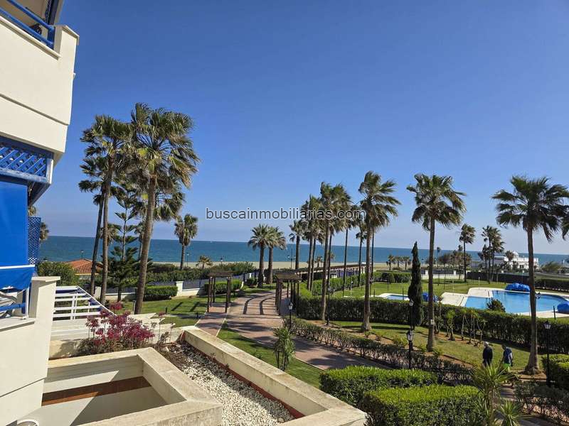 Apartamento de 2 dormitorios en primera línea de playa con terraza, vistas al mar y jardines y piscina, en la mejor urbanización de Sabinillas, en una ubicación inmejorable a poca distancia de todos los servicios.Este luminoso apartamento está bellamente amueblado, en excelentes condiciones, listo para entrar a vivir o alquilar. Tiene una terraza orientada al sur con hermosas vistas al mar, la playa y las zonas ajardinadas.El apartamento consta de un gran salón comedor con grandes puertas que dan a la terraza, una cocina independiente completamente equipada con electrodomésticos, un dormitorio principal con baño en suite y un segundo dormitorio con baño familiar, completamente reformado.El apartamento tiene suelos de mármol, varios armarios empotrados, un calentador de agua eléctrico y doble acristalamiento en todas las ventanas / puertas de balcón. No necesita preocuparse por el estacionamiento, ya que viene con un lugar en el garaje subterráneo vigilado por video.El residencial se encuentra en una ubicación muy privilegiada, en el bullicioso pueblo de San Luis de Sabinillas y con todos los servicios pero en una zona tranquila y segura con seguridad las 24 hrs.La urbanización tiene salida directa al paseo marítimo y cuenta con 2 pistas de pádel, piscina comunitaria, piscina infantil y parque infantil. Tiene jardines muy bien cuidados con pequeñas fuentes y bancos que invitan a relajarse a la sombra de las palmeras. También se encuentra justo en el paseo marítimo que va desde Buenas Noches hasta La Chullera por lo que es ideal para largos paseos.Está a solo unos minutos a pie del complejo deportivo de la ciudad con varias pistas de tenis, pistas de pádel, una piscina deportiva climatizada, una zona de sauna y spa, gimnasio, así como una serie de diferentes clases de deportes y aeróbic para niños y adultos. Dada su ubicación central, hay varios restaurantes y bares cercanos, y una gran tienda Lidl se encuentra justo en el lado opuesto de la calle.