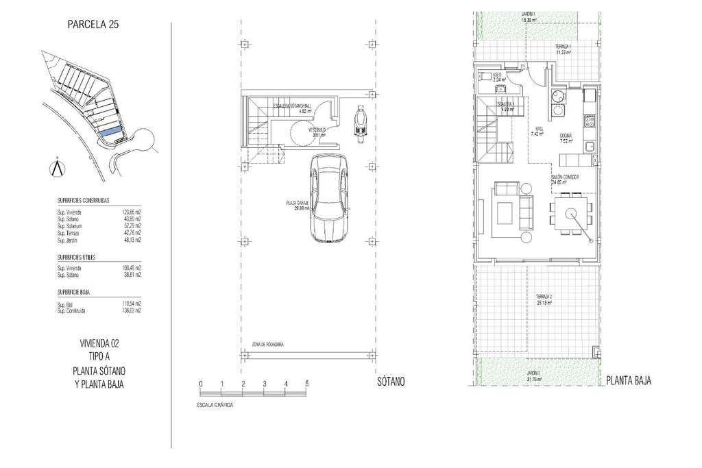 Viviendas modernas de 3 dormitorios, 2 baños, cocina americana con amplio salón, armarios empotrados, terrazas, solarium, jardín privado y sótano con garaje.