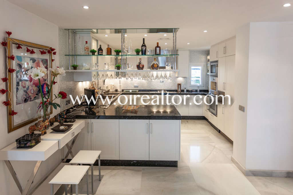 La distribución de este amplio ático nos permitiría hacer vida solamente en la planta baja, aunque su nivel superior es un regalo que no podemos obviar. El área noble está formada por undiáfano y luminoso salón comedor, con dos salidas a unaamplia terraza. Lo que permite la entrada demucha luz naturaly deleitarnos de unaspanorámicas espectaculares. En el exterior hay instalada unazona chill outpara disfrutar del buen tiempo que goza Marbella gran parte del año. Lacocinaestá abierta a una zonaofficey estátotalmente equipada.