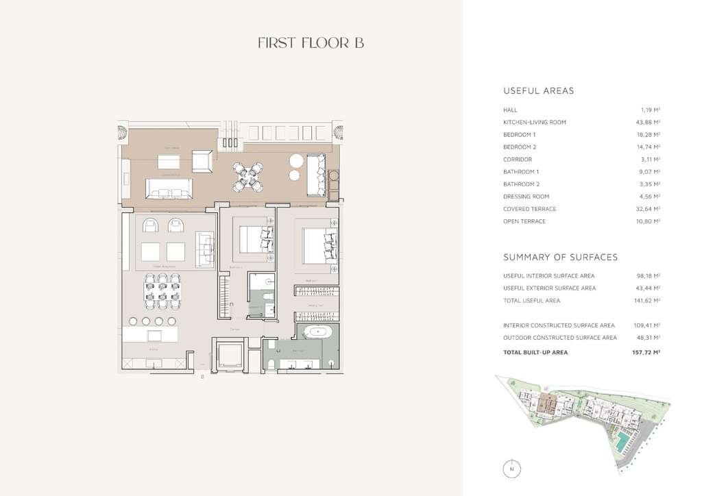 La comunidad cuenta con apartamentos de lujo de 2 y 3 dormitorios, áticos y dúplex dentro de un complejo cerrado y seguro. La primera fase consta de solo 16 residencias distribuidas en dos edificios de baja altura, lo que garantiza la exclusividad y la tranquilidad.
