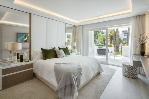 layout optimises functionality, making it an inviting space for those who enjoy cooking. The dining area features an exquisite marble dining table complemented by a sofa bench for added comfort. The living area, with direct terrace access, is ideal for relaxation, characterised by a stylish yet laid-back ambiance. The modern comfort is elevated by a neutral and elegant colour palette that harmonises effortlessly with the overall design theme of the property. The guest bedrooms showcase refined furnishings, each with its own ensuite bathroom. The master bedroom is equally impressive, featuring a stunning design and direct terrace access. The ensuite bathroom is functional and stylish, complete with a stand-in shower, bathtub, double vanity and flattering LED lighting. The expansive terrace is a highlight, boasting various chill-out corners and alfresco dining spaces. Direct access leads to the mesmerising communal gardens and pool, offering an impressive backdrop and granting residents resort views. Thanks to its orientation, the terrace is bathed in natural light throughout the day. offers an exquisite retreat within an unparalleled setting, as well as convenient access to the Marbella
