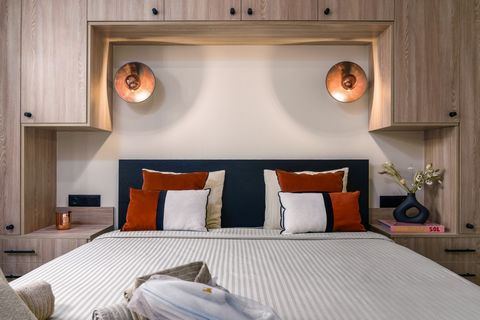 The fully equipped, independent kitchen is designed for both functionality and style, offering generous storage and high-quality appliances. A private terrace and balcony provide the perfect spaces to relax and enjoy the ever-changing marina scenery.