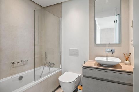 Entre las características destacadas de la propiedad se encuentran una cocina totalmente equipada, un amplio salón y comedor, y un suelo de porcelana. Además, cuenta con aire acondicionado, calefacción por suelo radiante en todo el apartamento y conexión a internet de alta velocidad. También dispone de gimnasio, jacuzzi, barbacoa y servicio de seguridad las 24 horas.
