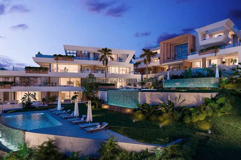 El diseño exterior del complejo utiliza materiales como madera, cristal y piedra, integrándose perfectamente con la topografía del terreno. Las viviendas ofrecen desde plantas bajas con jardines privados hasta áticos con amplias terrazas y piscinas privadas, creando un entorno de vida excepcional. Los precios comienzan desde 1 150 000 € por una propiedad de 232 m2 que combina comodidad, lujo y la belleza del entorno natural.