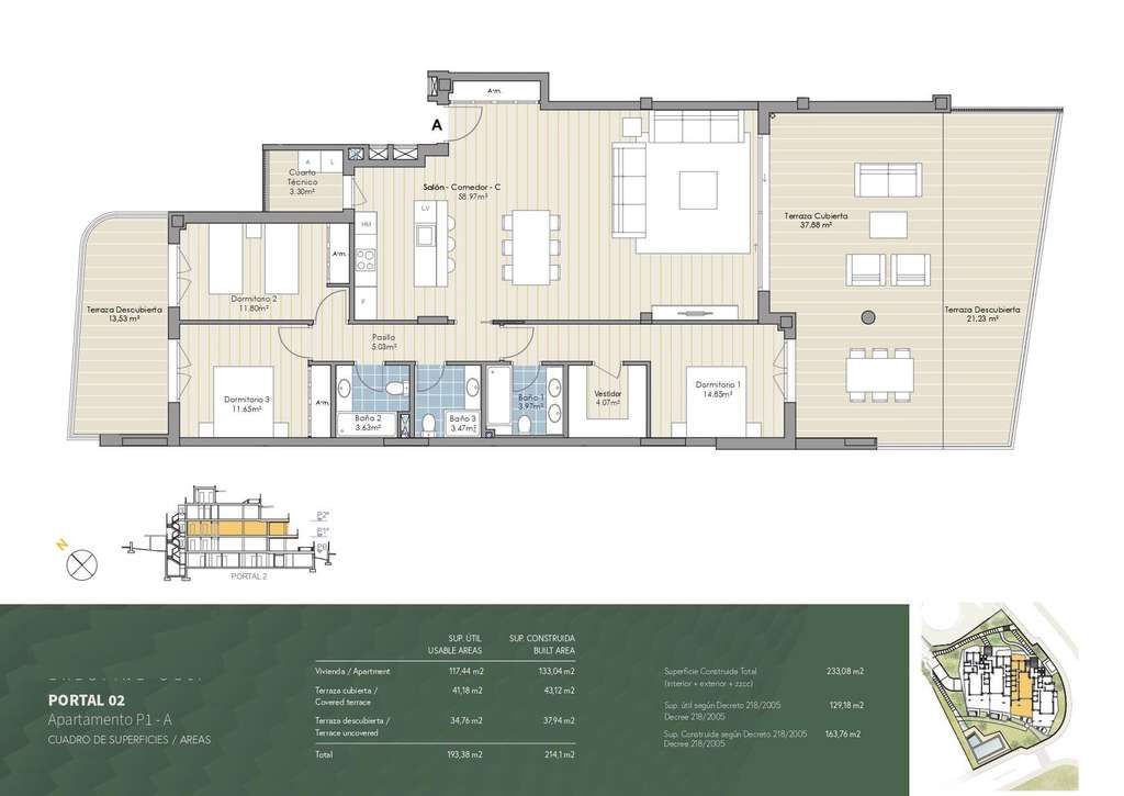 Cada apartamento está diseñado pensando en la sostenibilidad, con calefacción por suelo radiante en toda la vivienda y avanzados sistemas aerotérmicos para reducir el consumo de energía. Las viviendas tienen una calificación energética A, y todas incluyen sistemas de domótica para mejorar el confort y el control. Las cocinas, totalmente equipadas, cuentan con electrodomésticos de primera calidad, modernos armarios y duraderas encimeras de porcelana.