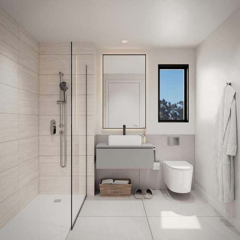 Dispone de viviendas con amplias terrazas. Además, la promoción incluye bajos con jardín y áticos con terraza y solarium privado. Los interiores de todas las viviendas se caracterizan por su luminosidad y excelentes acabados.