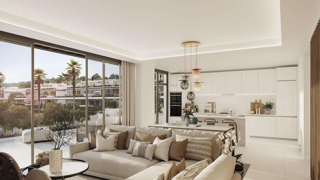 Urbanización cerrada en primera línea de golf, sobre unas suaves lomas en las inmediaciones de Marbella. Viviendas de 3 y 4 dormitorios con grandes ventanales, y salón y cocina integrados en un espacio diáfano que permiten aprovechar la luz natural en cada momento del día. La terraza ha sido diseñada para integrar la naturaleza y el mar a tus mejores momentos. Extensas zonas verdes bajo pinos centenarios, spa y gimnasio, y 2 amplias piscinas con solarium para disfrutar de las innumerables horas de sol que ofrece el sur de España. Marbella es considerada la capital de la Costa del Sol occidental. Bañada por el mar y resguardada de las montañas, con espléndidas y extensas playas de aguas tranquilas a lo largo de 27 Km de costa, puertos deportivos, 21 campos de golf, hospital, chiringuitos, y una amplia oferta gastronómica, desde los típicos “chiringuitos” de playa y bares de tapas, hasta los más lujosos restaurantes con estrella Michelín. Todo esto, sumado a su microclima con 320 días de sol al año, convierten a Marbella en uno de los destinos más cotizados para vivir en España. 425