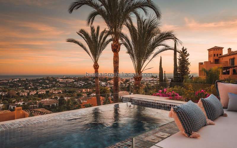 Espectacular ático dúplex totalmente reformado con vistas panorámicas ininterrumpidas al mar, la montaña y el Valle del Golf en Los Belvederes, una conocida urbanización cerrada en La Cerquilla, Nueva Andalucía, con seguridad 24 horas, jardines comunitarios maduros, piscina, 2 pistas de tenis (actualmente en discusión la transformación de una en 2 pistas de pádel), y un gimnasio con sauna.