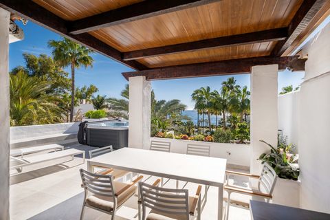 This exclusive, south-facing duplex penthouse offers stunning frontal sea views and is situated in one of the most prestigious beachfront developments in Puerto Banús, Marbella. Ventura del Mar is renowned for its peaceful ambiance, just a short walk from the vibrant Puerto Banús, offering privacy, 24-hour security, and beautifully landscaped tropical gardens with streams and ponds. Residents enjoy a large outdoor pool, a fully equipped gym, and direct access to the promenade and beach.