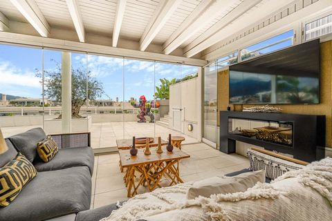 La planta superior revela una extensa terraza de aproximadamente 300 m², con un salón cerrado y climatizado, un área de comedor cubierto con decoración de inspiración africana y una cocina totalmente equipada con un baño adicional. Esta terraza en la azotea también cuenta con una piscina climatizada y una zona de solárium, que ofrece vistas panorámicas de los alrededores.