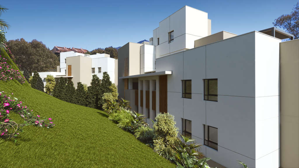 El complejo residencial se compone de varios edificios de tres plantas, distribuidos de manera que todas las viviendas disfruten de vistas despejadas. Las amplias terrazas, con 41 m², permiten a los residentes disfrutar del clima mediterráneo y las vistas al entorno natural y al Valle del Golf. Los jardines, cuidadosamente diseñados, reflejan un estilo "Boho Chic" y "Country Chic", utilizando materiales y colores naturales que se mezclan perfectamente con el paisaje. Las cuatro piscinas comunitarias, rodeadas de zonas verdes, ofrecen un espacio ideal para relajarse y disfrutar del sol en un entorno tranquilo y exclusivo.