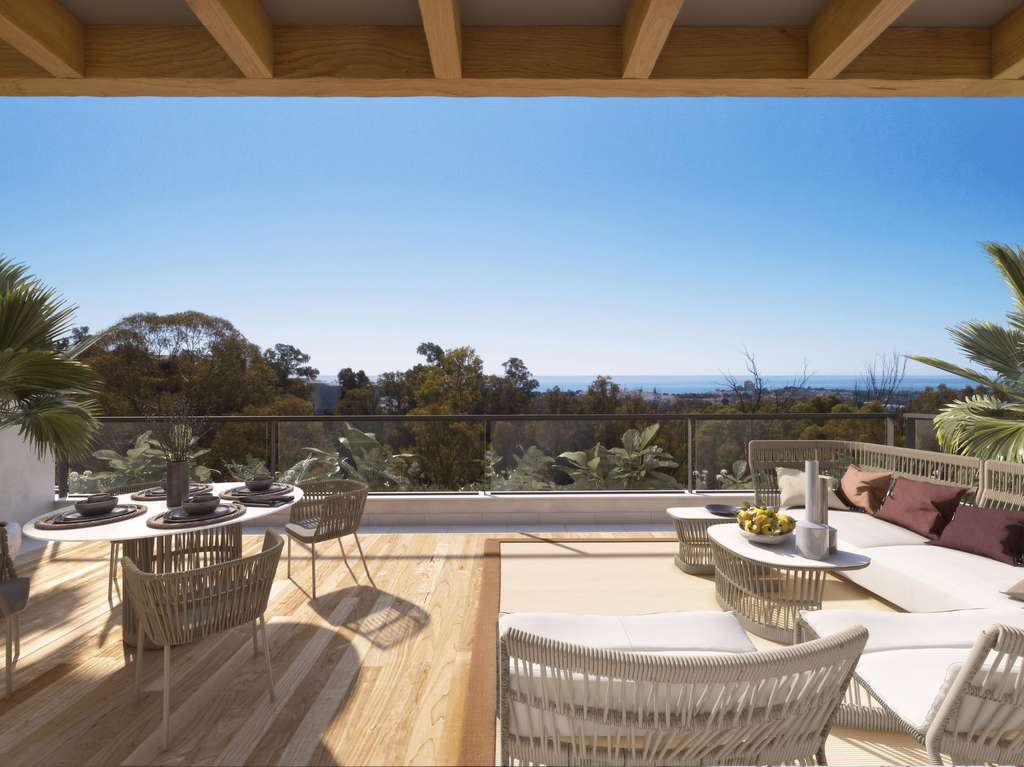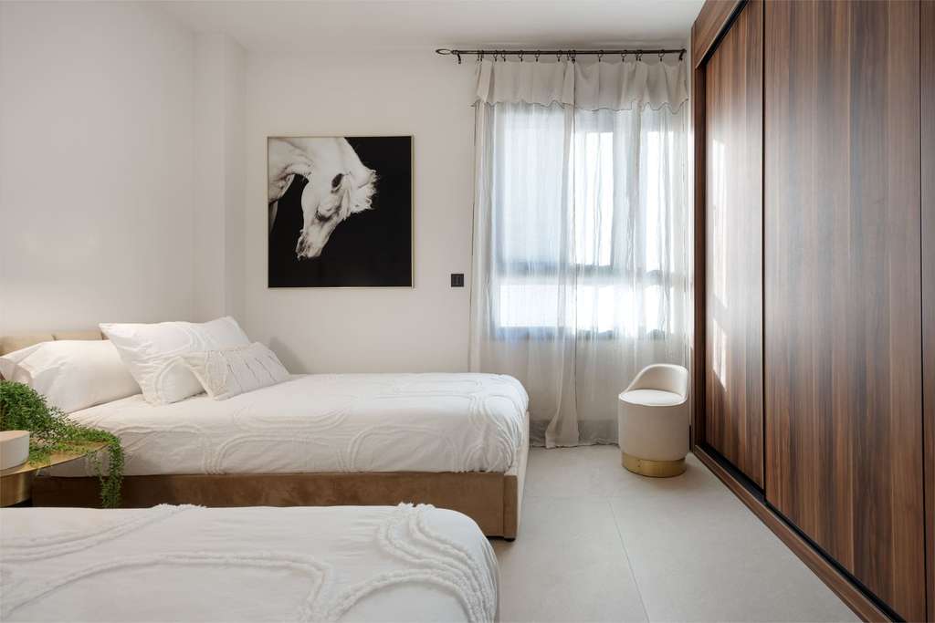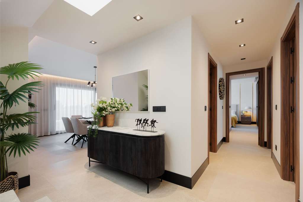 Los interiores de las viviendas están diseñados para ofrecer el máximo confort y elegancia. Con 113 m² construidos y 100 m² útiles, cada apartamento cuenta con un diseño espacioso y funcional, optimizando la luz natural y el espacio abierto. Las viviendas incluyen tres dormitorios dobles, dos baños completos, y una cocina moderna equipada con electrodomésticos de marcas reconocidas. Los salones amplios se extienden hacia las terrazas, creando una conexión fluida entre el interior y el exterior. Los acabados de alta calidad, combinados con una distribución inteligente, aseguran un ambiente acogedor y sofisticado, ideal para disfrutar del estilo de vida marbellí.