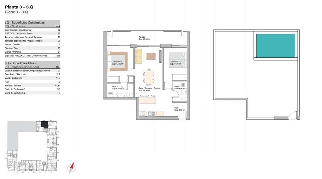 Piscina cubierta climatizada y gimnasio totalmente equipado.