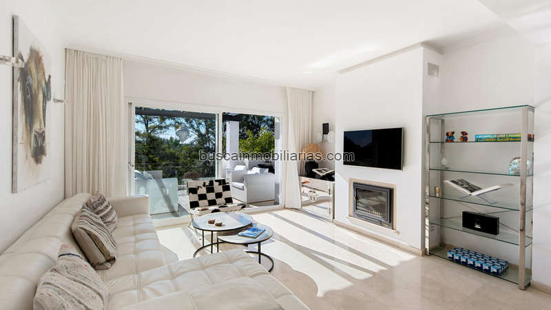 En la planta baja tenemos el hall de entrada con aseo de invitados apagado, una gran cocina totalmente equipada con lavadero y el amplio salón con chimenea y acceso a la terraza.