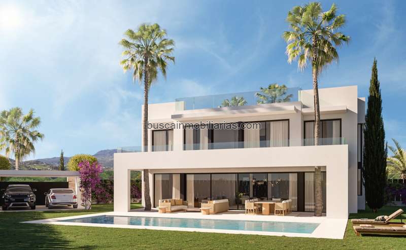 Lujosa villa de estilo moderno situada entre Marbella y Estepona, a cinco minutos a pie del Campanario Golf & Country Club y a diez minutos en coche del centro de Puerto Banús.