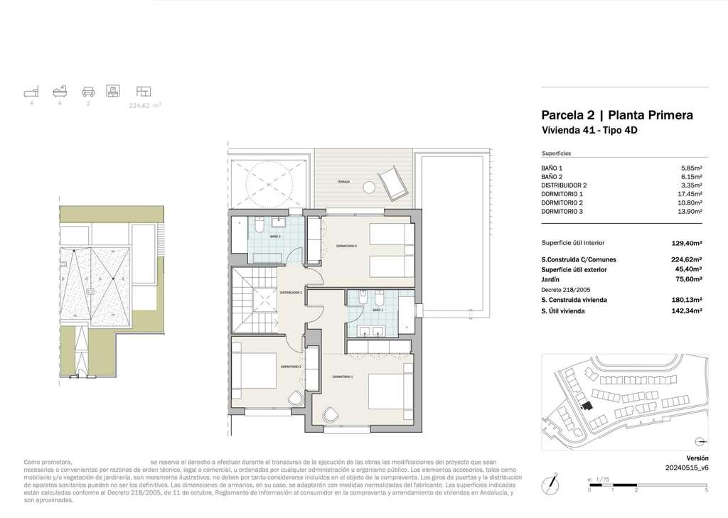 Sistema de climatización mediante aerotermia, cocina totalmente amueblada y equipada, y acabados de primer nivel. Las viviendas cuentan con el sello BREEAM®, un certificado de construcción sostenible y respetuosa con el medio ambiente.