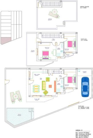 Descripción del objeto: Villas que constan de una superficie construida de unas 158 m² - 182 m² (incluyendo terrazas) con 3 dormitorios, 2 baños, 1 salón / comedor con cocina, 1 terraza en planta alta y 1 solario (a unos 35 m² - 39 m²). Las parcelas tienen un tamaño de 129 m² - 197 m². Esta urbanización consta de maravillosos adosados y villas con 3 dormitorios, 2 baños y piscina privada. También hay un parking privado y también tienen las viviendas un solario grande. A poca distancia del complejo se encuentran instalaciones comerciales y varios bares y restaurantes acogedores. Equipamiento adicional: El equipamiento de las villas incluye entre otras cosas pre-instalación de aire acondicionado, armarios empotrados en los dormitorios, cocinas amuebladas con electrodomésticos, baños con muebles, espejo y mampara y piscina privada en la parcela. Ubicación de casa/solar: La urbanización se encuentra en una situación tranquila, pero céntrica en el pueblo de San Pedro del Pinatar, a unos 2,5 km de la playa del Mar Menor. Todos los servicios se puede encontrar en San Pedro del Pinatar - restaurantes, bares, pequeñas tiendas y un supermercado puede encontrar a poca distancia. La zona está muy bien comunicada, especialmente a través de la autopista AP-7. El Mar Menor con sus playas hermosas, los pequeños pueblos pesqueros y el agua del mar, que siempre lleva una temperatura más alta que el resto del Mediterráneo, son especialmente interesantes para deportistas náuticos. Ellos pueden disfrutar de una amplia oferta de deportes acuáticos durante todo el año. Además, se puede encontrar una naturaleza maravillosa con amplias reservas ornitológicas y baños de barro terapéuticos. Un poco más alejados están los pueblos de Los Alcázares y Torrevieja, y la ciudad de Cartagena que dispone de una historia de más de 2.500 años y ofrece, además de establecimientos modernos, una amplia oferta cultural y una aproximación a la historia y tradición de España. También la capital de la provincia Murcia merece una visita. Otros: Calificación energética está pendiente.