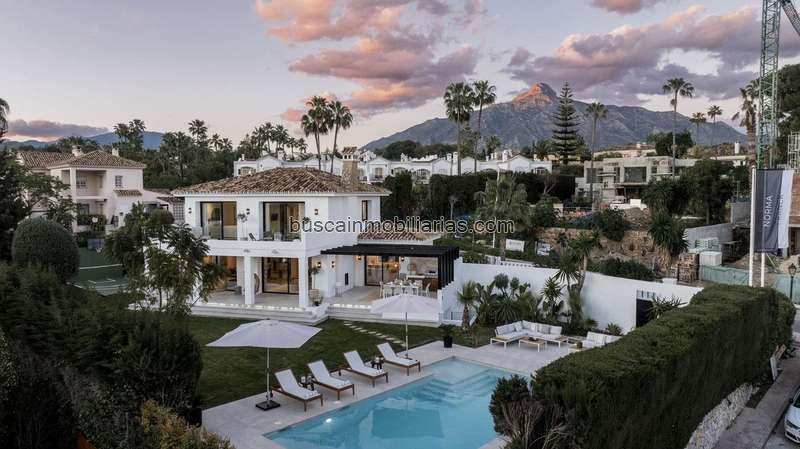 Vistas al golf. La Concha como telón de fondo. Diseñada para vivir en familia. Situada en Nueva Andalucía, esta villa de cinco dormitorios con orientación suroeste combina el encanto andaluz con el confort moderno. Totalmente reformada, capta la luz natural durante todo el día y ofrece amplias terrazas, una piscina privada y un exuberante entorno verde. En la planta superior, los dormitorios gozan de vistas abiertas al campo de golf, lo que aumenta la sensación de espacio y tranquilidad. La cocina abierta y la sala de estar se extienden perfectamente a una terraza cubierta con una cocina al aire libre y una pérgola, perfecta para comer al aire libre. Arriba, la suite principal disfruta de una terraza privada con jacuzzi bajo las estrellas, mientras que otros tres dormitorios mantienen a la familia cerca. Dos habitaciones adicionales en el nivel de entrada incluyen un espacio flexible, ideal como habitación infantil o despacho. El nivel inferior es una amplia zona diáfana que ofrece espacio para una mesa de ping pong, un futbolín y una sala de TV, creando un espacio versátil para la relajación o el entretenimiento. Una bodega climatizada se encuentra junto a este espacio. El garaje ha sido reimaginado como un gimnasio, aunque todavía puede funcionar como un garaje si se prefiere. En el exterior, una pequeña cancha de baloncesto. Calefacción por suelo radiante, un garaje y aparcamiento adicional completan esta casa bien pensada. Una villa familiar y una fuerte inversión de alquiler donde la vida fluye sin esfuerzo.