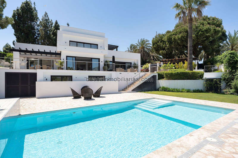 Una villa contemporánea ubicada en el corazón de Nueva Andalucía, a poca distancia de servicios como supermercados, restaurantes y el Centro Comercial Centro Plaza, y a solo unos minutos en coche de los mejores campos de golf de la zona. Esta propiedad tiene orientación sureste, con sol todo el día en la piscina e impresionantes vistas a la montaña de La Concha y al mar. Distribuida en tres plantas, la planta principal presenta un diseño diáfano con amplios salones que dan directamente a la gran terraza con varias zonas de estar ideales para el entretenimiento, dos dormitorios de invitados con baño en suite y un aseo. La planta superior se dedica al amplio dormitorio principal con baño en suite y terraza privada. En la planta baja hay otro dormitorio de invitados con baño en suite, aseo y sala de juegos. El jardín es de fácil mantenimiento y dispone de garaje para hasta tres coches.