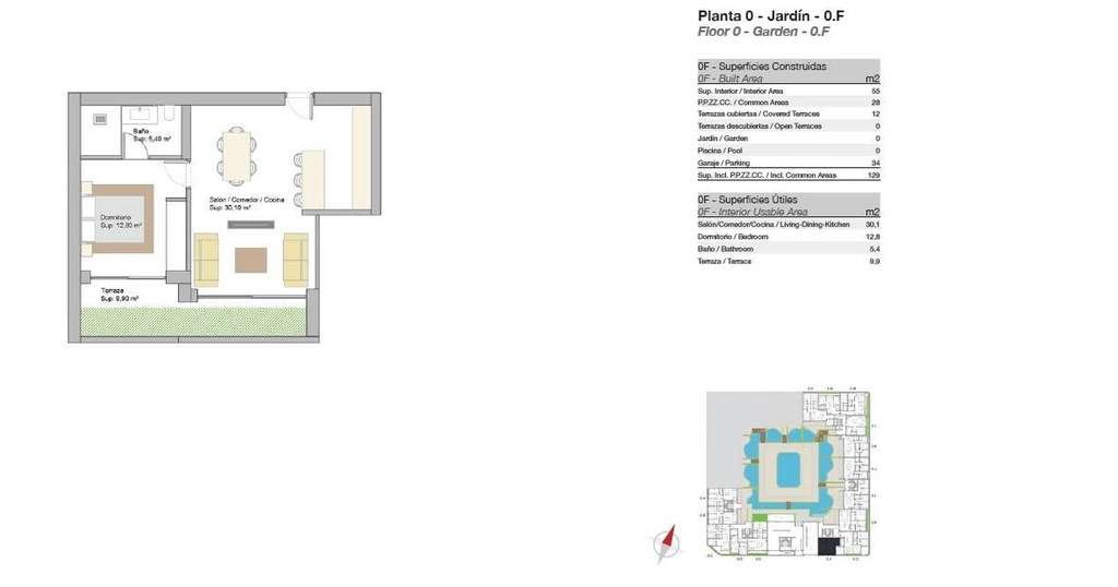 Apartamentos en planta baja con jardines privados y algunas unidades con piscinas estilo playa