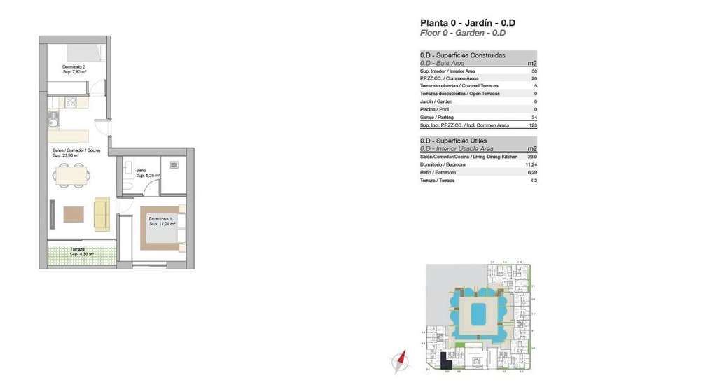Apartamentos en planta baja con jardines privados y algunas unidades con piscinas estilo playa
