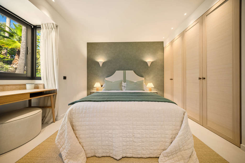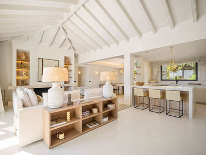 Situada en el corazón de Nueva Andalucía, a escasos minutos del prestigioso campo de golf Los Naranjos, es una villa de una sola planta completamente rediseñada para ofrecer el máximo confort y estilo. Enclavada sobre una parcela elevada de 855 m², esta elegante propiedad combina el encanto mediterráneo con un diseño contemporáneo cuidadosamente ejecutado por Casas Fintech. Rodeada de vegetación y con vistas abiertas al valle y al mar, es el refugio perfecto para quienes buscan privacidad, sofisticación y una ubicación privilegiada en Marbella.EXTERIORESEl exterior de esta villa es una auténtica extensión del estilo de vida mediterráneo. La terraza principal se abre a una espectacular piscina que parece suspendida sobre el paisaje, acompañada de una zona de estar hundida, una cocina al aire libre y varios rincones diseñados para el relax y el entretenimiento. Los jardines, meticulosamente cuidados, rodean la propiedad y ofrecen distintas zonas de descanso con total privacidad. Además, la azotea proporciona un solárium con vistas panorámicas, mientras que el patio con fuente añade un toque de serenidad e intimidad.INTERIORESLa villa cuenta con 241 m² construidos distribuidos en un solo nivel, lo que garantiza una experiencia cómoda y fluida. Los interiores destacan por su paleta de colores naturales, techos altos abovedados y una distribución abierta que conecta el salón, el comedor y la cocina de diseño. La luz natural inunda los espacios a través de puertas de cristal de suelo a techo, creando una atmósfera cálida y elegante. Cada rincón ha sido diseñado con detalle: mobiliario a medida, electrodomésticos de alta gama y una cuidada iluminación ambiental. Dispone de cuatro amplios dormitorios, todos con baño en suite, incluyendo una master suite con acceso directo al jardín, pensada para el descanso y la desconexión total.