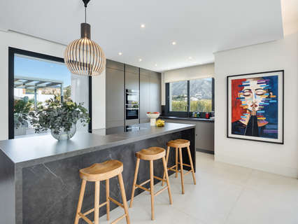 Situada en la codiciada zona residencial de La Cerquilla, en el corazón del exclusivo Valle del Golf de Nueva Andalucía, es una villa moderna que representa la perfecta fusión entre elegancia contemporánea y confort mediterráneo. Con vistas panorámicas al mar y a la montaña, esta propiedad de alto nivel ofrece un estilo de vida sofisticado a escasos minutos de Puerto Banús, campos de golf de renombre, colegios internacionales y todo tipo de servicios.EXTERIORESDiseñada para disfrutar al máximo del clima de la Costa del Sol durante todo el año, la villa ofrece generosas terrazas, zonas chill-out, comedor exterior y una elegante pérgola junto a una piscina privada. Una kitchenette al aire libre con barbacoa integrada añade un plus para los amantes del entretenimiento. La parcela de más de 1.100 m² garantiza amplitud, privacidad y jardines cuidados que enmarcan el entorno natural de forma armoniosa. La iluminación exterior crea una atmósfera mágica al caer la noche.INTERIORESCon una superficie construida de 404 m², los espacios interiores destacan por su diseño de planta abierta y una distribución que fluye de forma natural entre cocina, comedor y salón. La cocina, moderna y funcional, incorpora una isla central de mármol y electrodomésticos de última generación. Grandes ventanales de suelo a techo inundan de luz natural cada rincón y conectan sin interrupciones el interior con el exterior. En la planta superior, cinco dormitorios amplios ofrecen privacidad y confort; la suite principal cuenta con acceso directo a la terraza y un baño en suite de estilo boutique.