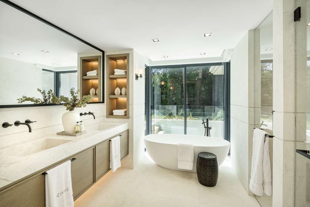 En el corazón de Nueva Andalucía, frente a uno de los clubes de golf más prestigiosos de Marbella, se encuentra una villa de lujo que redefine la elegancia contemporánea. Orientada al oeste y bañada por la luz del atardecer, esta propiedad combina arquitectura moderna, interiores sofisticados y un entorno exclusivo que asegura privacidad, confort y un estilo de vida incomparable.EXTERIORESEl diseño paisajístico del jardín envuelve la propiedad en un ambiente sereno y refinado. La piscina privada se convierte en el centro de la vida al aire libre, acompañada por una zona de descanso hundida ideal para reuniones y momentos de relax. Una pérgola con bar a medida y área de comedor exterior completa este espacio, pensado para disfrutar del clima mediterráneo durante todo el año, con vistas ininterrumpidas al campo de golf.INTERIORESAl acceder a la villa, los detalles de lujo se hacen presentes en cada rincón. Los suelos de Crema Sara, las líneas arquitectónicas limpias y la paleta de colores neutros transmiten serenidad y amplitud. La sala de estar, con techos altos y grandes ventanales, conecta de forma fluida con el comedor y una cocina diseñada a medida, equipada con electrodomésticos de última generación. La suite principal ocupa la planta superior como un auténtico santuario privado, con un vestidor de gran tamaño, baño en suite y terraza privada con vistas privilegiadas. Los dormitorios de invitados, distribuidos entre planta baja y sótano, ofrecen espacios en suite de diseño impecable, pensados para el máximo confort.